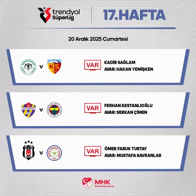 Trendyol Harika Lig’in 17. haftasında bugün oynanacak maçların VAR hakemleri açıklandı.